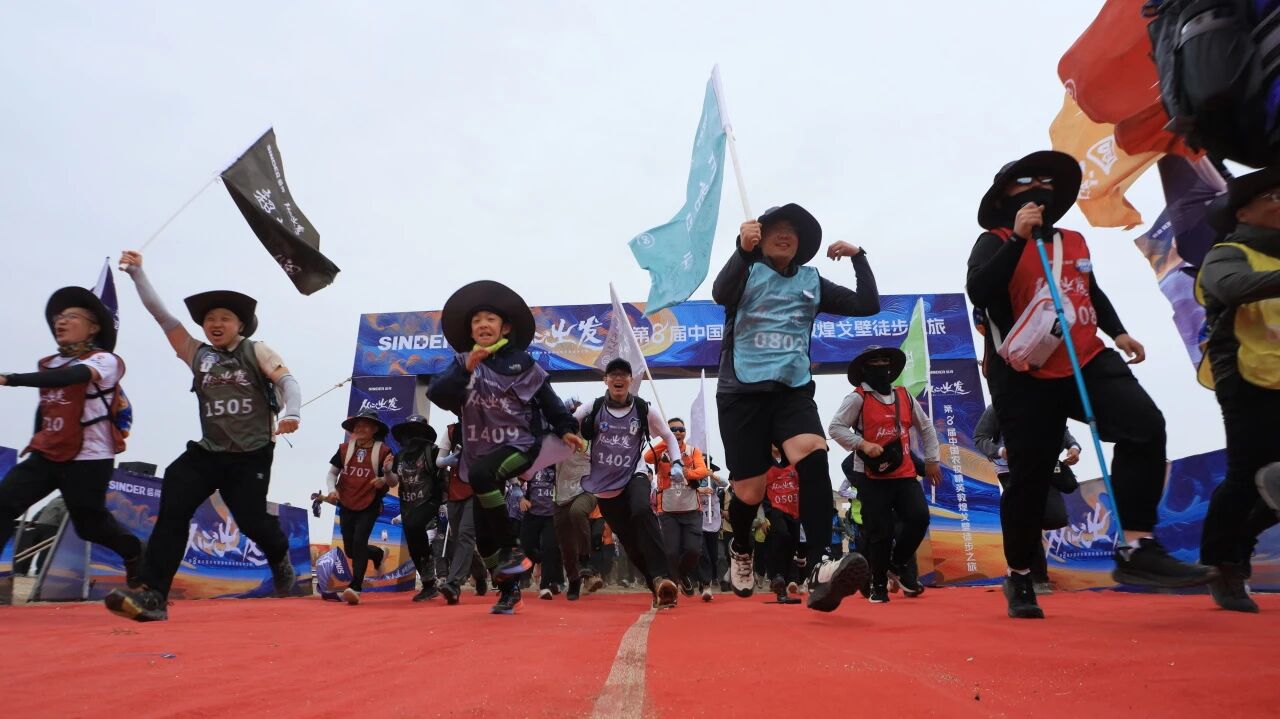 战鼓擂动,旌旗飞扬! 随着出征的号角响彻大漠,17支战队的旗手奋力奔向前方,拉开了第八届中国农牧精英戈壁徒步之旅的序幕。戈友们向承载着千年文明的戈壁腹地进发,重走玄奘之路,于大漠孤烟、长河落日的苍茫中,开启了一场遇见更好自己的修行。