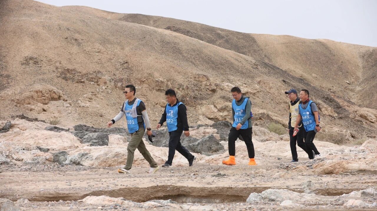脚下的路,复杂而充满挑战——既有一望无垠的戈壁,也有崎岖蜿蜒的峡谷,既要穿越干涸的河道,也要翻越连绵的沙丘。随着征程渐深,脚步从最初的轻快变得愈发沉重。在单调的行走中,每一位戈友都迎来了一场与自我的极限对话。当身体发出疲惫的抗议,当内心升起放弃的念头,那股支撑着脚步不辍、信念不倒的内在力量,便是“心力”最真实的显现。