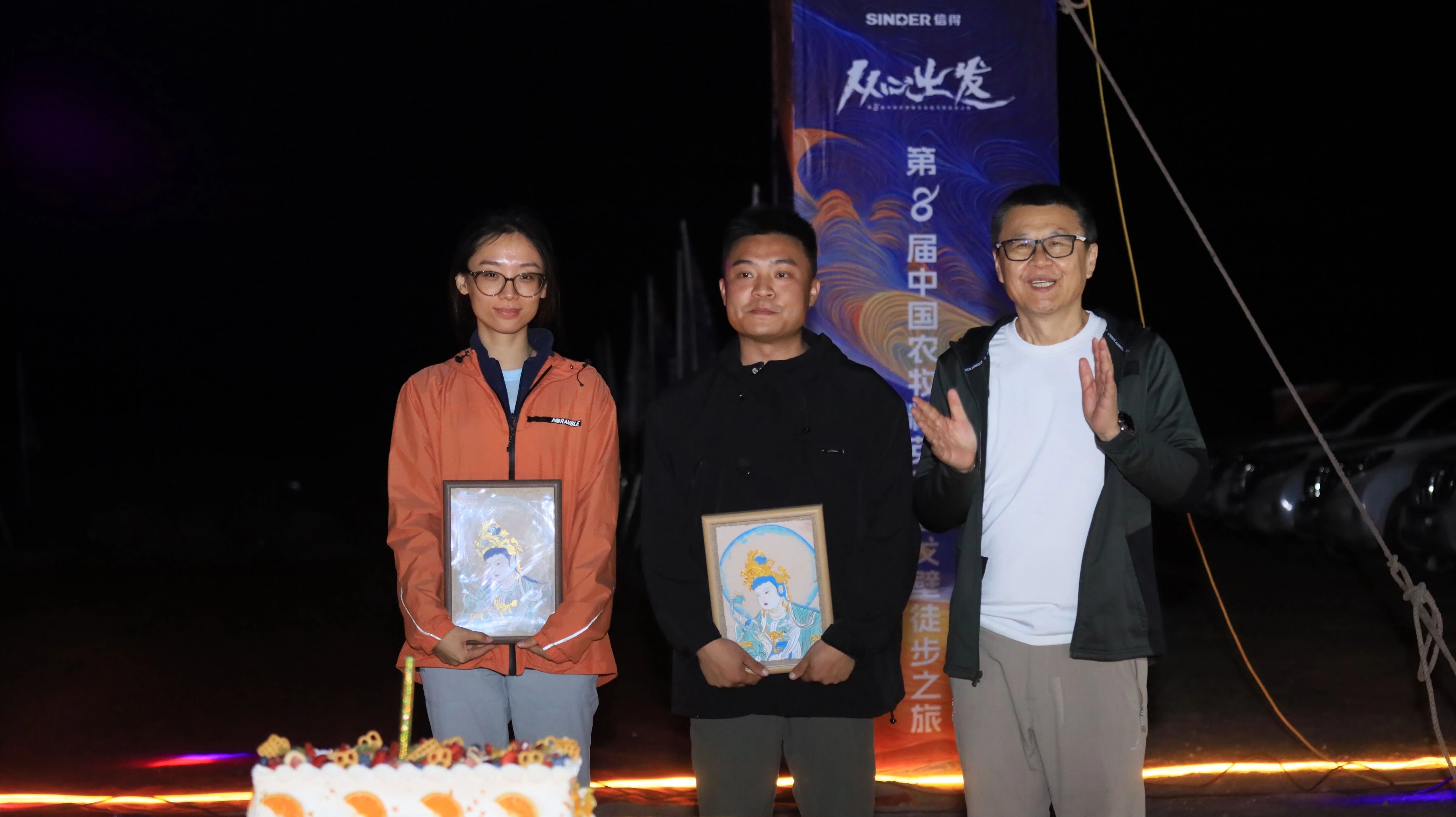 生日的祝福:戈壁的夜,不仅有璀璨的星空,更有触及灵魂的温暖。全体戈友向徒步期间过生日的两位戈友共唱生日歌,李朝阳董事长更送上特别的生日礼物。苍茫大漠中尽显 “团队是家、队友是亲人” 的温情。