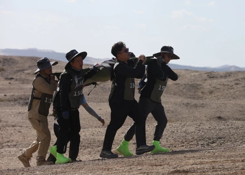 彼时,戈友们的体力已几近透支,肌肉的酸胀如同火焰灼烧,呼吸沉重地仿佛能听见心跳的回响。然而,挑战要求他们用简易的担架,抬着一位队友,共同前行。